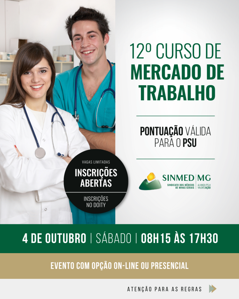 Inscreva em https://doity.com.br/12-curso-de-mercado-de-trabalho-medico-sinmed-mg