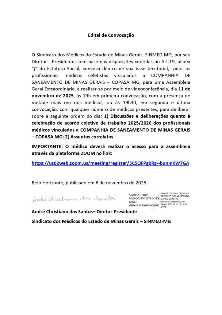 Data da publicaçao: 6 de novembro/2025- Data da assembleia: 11 de novembro/2025