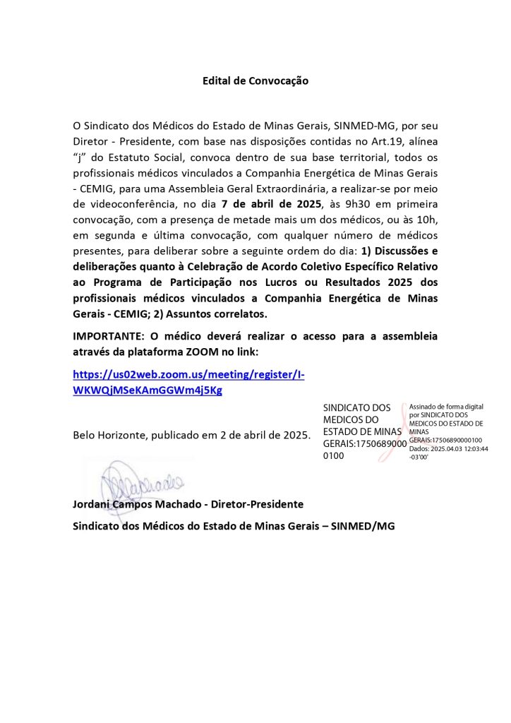 Data da publicação: 3 de abril /2025 – Data da assembleia: 7 de abril/2025