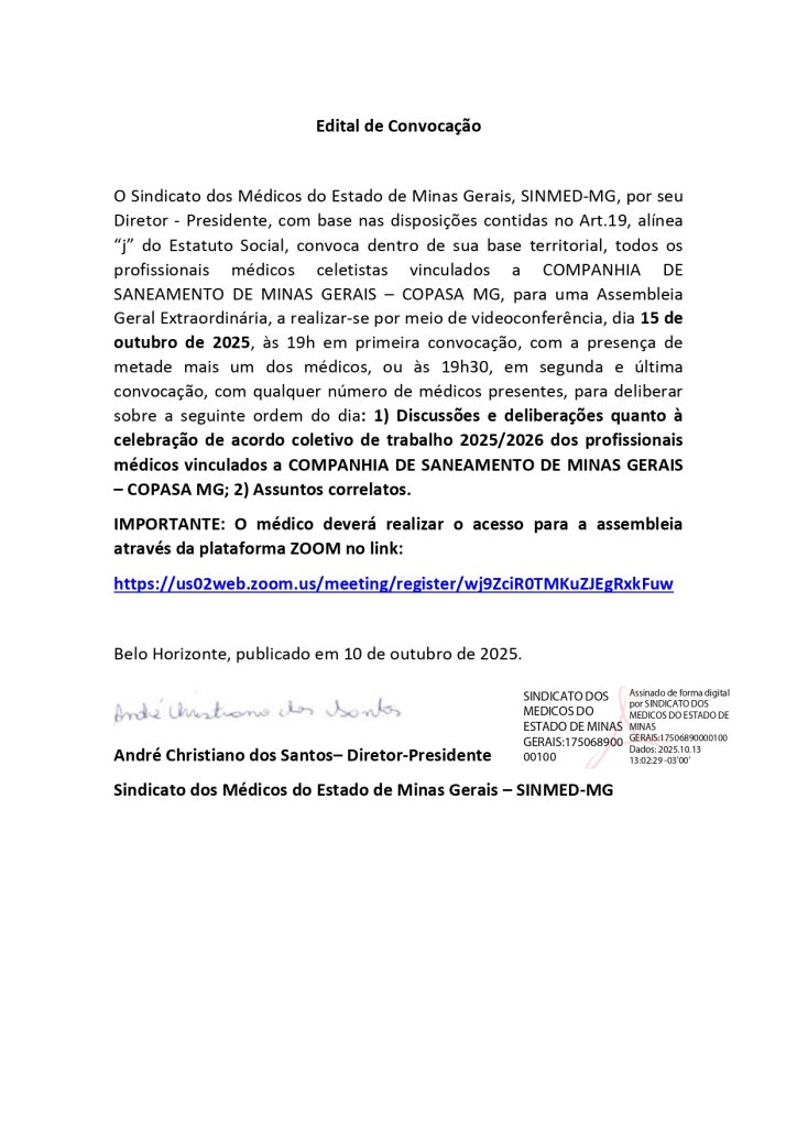 Data da publicação- 9 de outubro/ 2025 -Data da assembleia: 15 de outubor/2025
