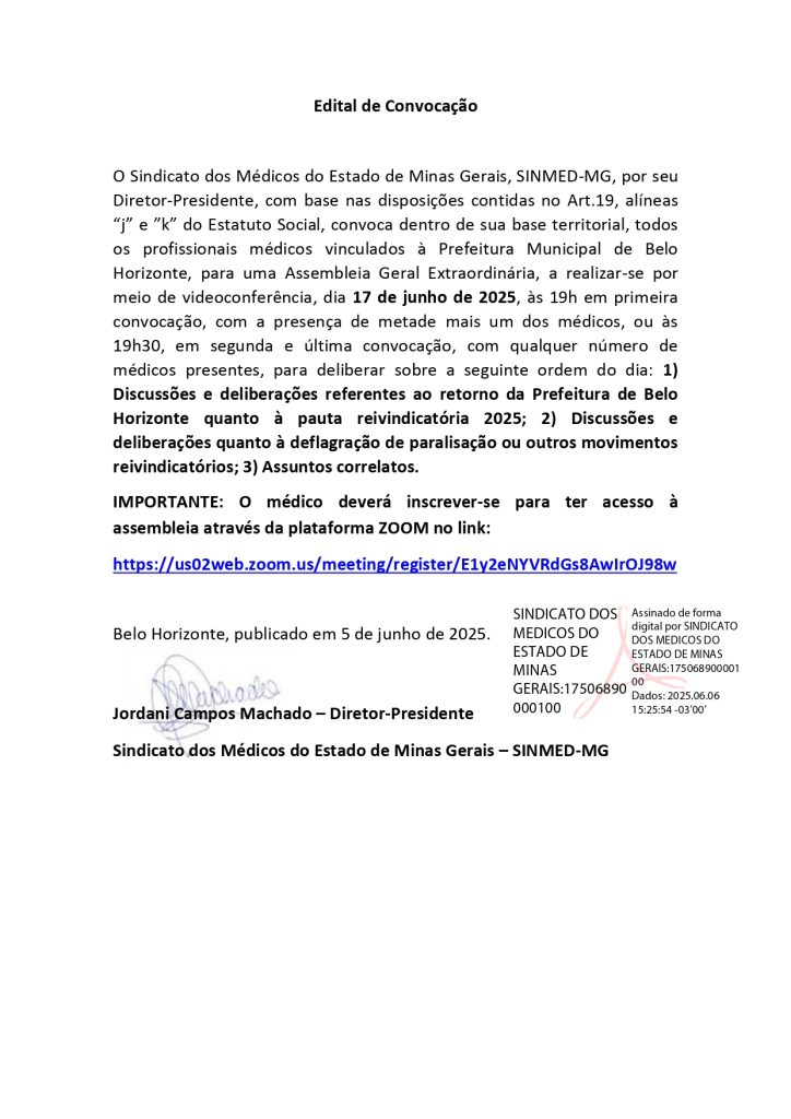 Data de publicação: 6 de junho/2025- Data da assembleia: 17 de junho/2025