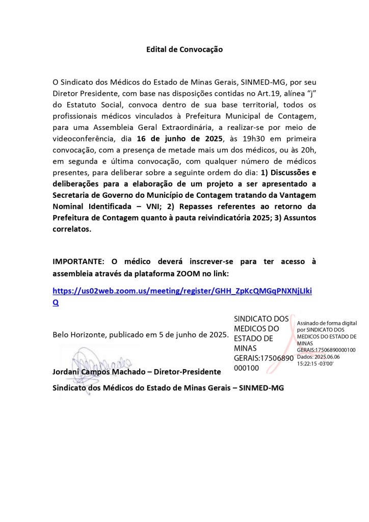 Data de publicação: 6 de junho/2025- Data da assembleia: 16 de junho/2025