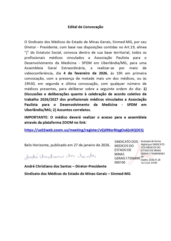 Assembleia Geral dos médicos vinculados à SPDM- Uberlândia
