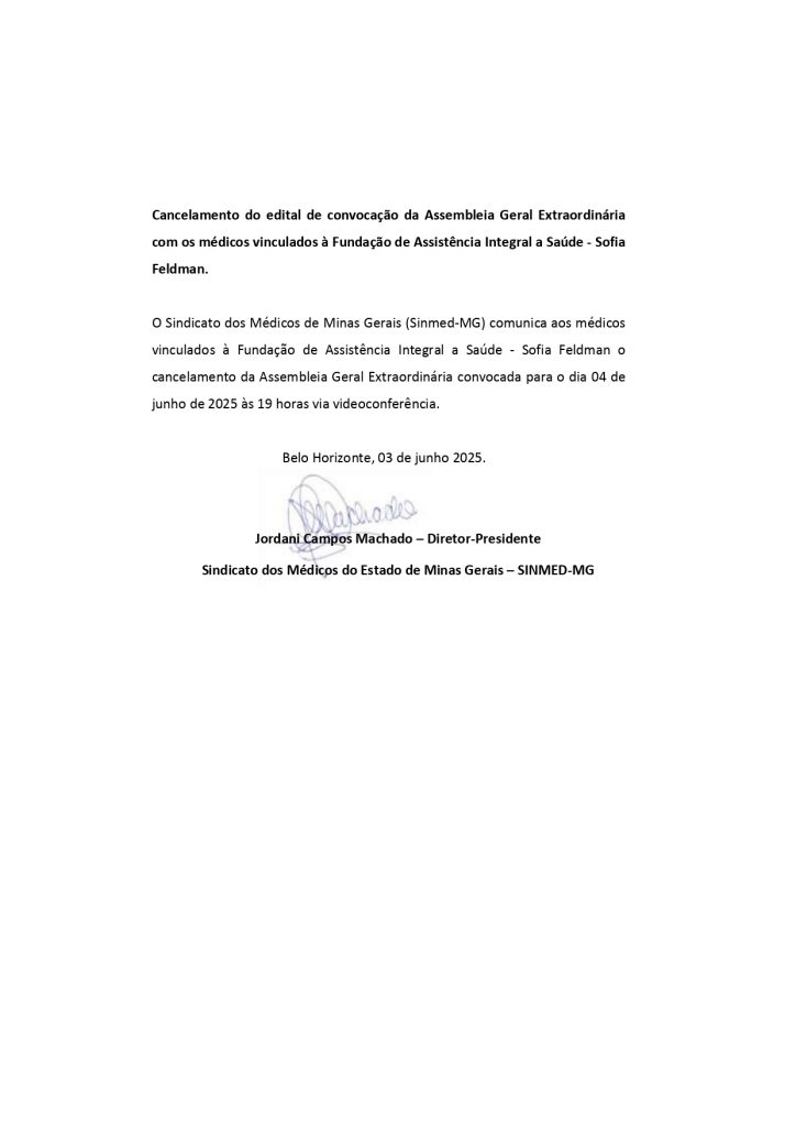 Cancelamento do Edital da Assembleia dos médicos vinculados à Faepu de 3 de junho/2025