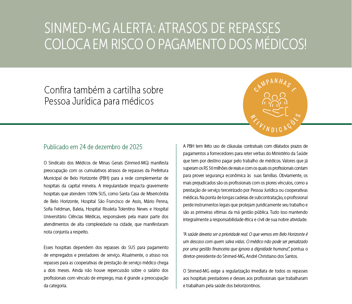 Home Notícias Sinmed-MG alerta: atrasos de repasses...